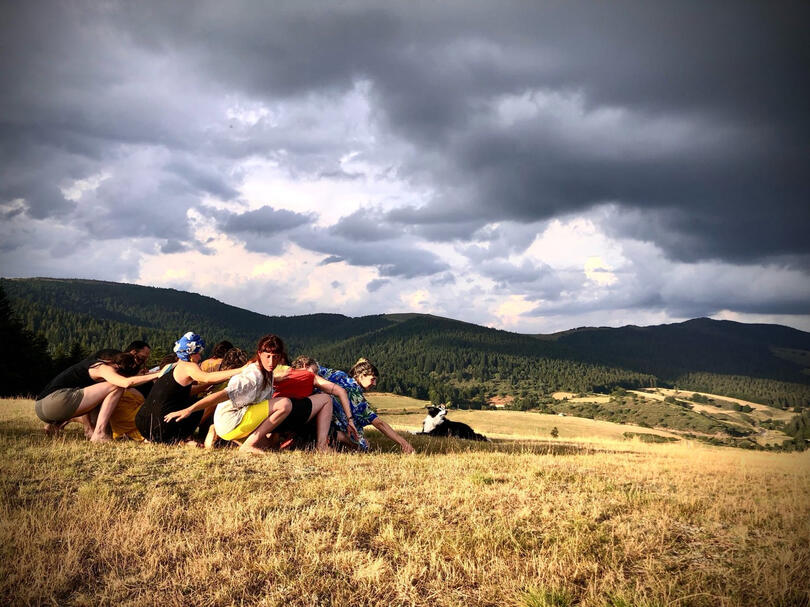 Danser.Vivre la marche comme une danse, avec ses rythmes, ses intentions, ses amplitudes et toutes les métamorphoses qu'elle peut amener. Éprouver notre rapport sensible au milieu qui nous entoure. Développer une écoute poreuse entre notre cartographie intérieure et le paysage. Créer des alliances pour composer avec l'espace, les partenaires, les éléments de notre corps. Performer chaque jour et signer des créations individuelles et collectives.